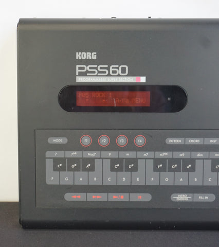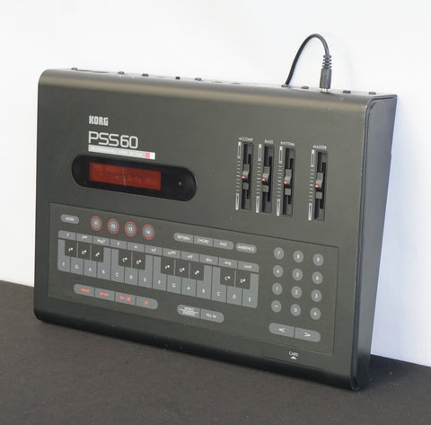 The Korg PSS60, released in 1988, is a compact drum machine and arranger module designed for song sketching and backing. It provides three sections—drums, bass, and chord accompaniment.