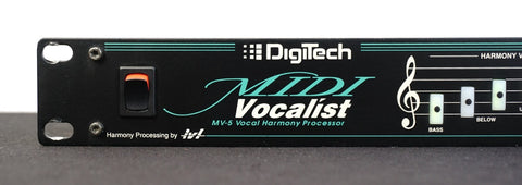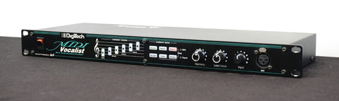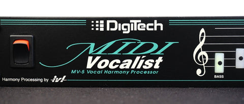 The Digitech MIDI Vocalist MV-5 released in the late 2000s is a rack-mount vocal processor and harmoniser that analyses your voice in real time and, via MIDI input, generates harmonies and backing vocals pitched to the chords you’re playing on a MIDI-capable keyboard or guitar-synth rig, offering up to four-part harmony, pitch-shifting, doubling, and built-in transposition. Its internal DSP provides clean pitch tracking and tight timing, making it popular among solo performers and small ensembles who want full vocal harmonies without backing singers, while the straightforward rack-mount 1U form factor and MIDI flexibility make it useful in studio and live applications alike. The MV-5 remains desirable among gigging musicians and producers for its reliability, MIDI integration and the classic Digitech vocal-processing character typical of that era.