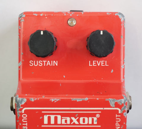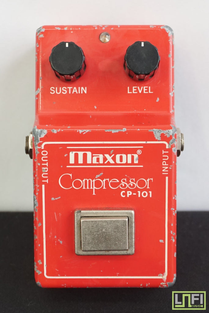 The Maxon CP-101 is a vintage Japanese guitar effects pedal from the early 1980s made in Japan, designed as a transparent, low-noise compressor. It features two intuitive knobs — Sustain (controls how long the compression holds) and Level (adjusts output volume) — plus a “Normal/Effect” footswitch and LED indicator.