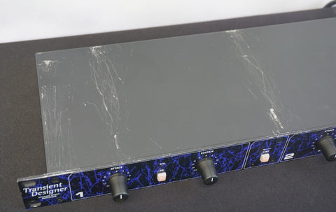 Each channel provides Attack and Sustain controls, enabling shaping of signal transients for a wide range of audio sources. The unit is housed in a 19-inch rackmount chassis and features analogue audio inputs and outputs for integration into studio or live signal chains.