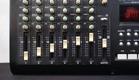 Add some nice grainy tape sound to your mixes with this rare, 90's 4 Track cassette tape recorder from Tascam. The PORTASTUDIO 424 MKIII is a 4-track "Multitrack Master" cassette tape recorder and a full-function mixer with 8 inputs/stereo outputs combined into a single workstation. Its high audio quality and creative flexibility reflect the experience and innovation that have allowed TASCAM to earn its reputation in professional audio production fields, and its user-friendly design makes the 424 MKIII suitable for anyone, from expert to novice.