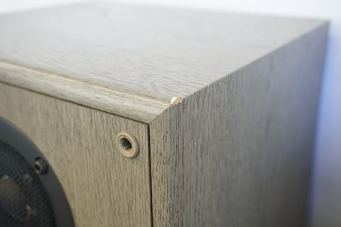 - Cosmetically these speakers are in nice condition. They show some signs of use and age like some marks, nicks and scratches. There is some sections on the corners and edges where the vinyl has been chipped off. Nothing too major, overall they are a pretty nice pair.