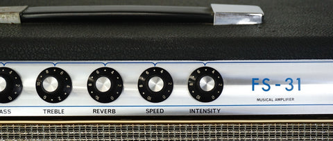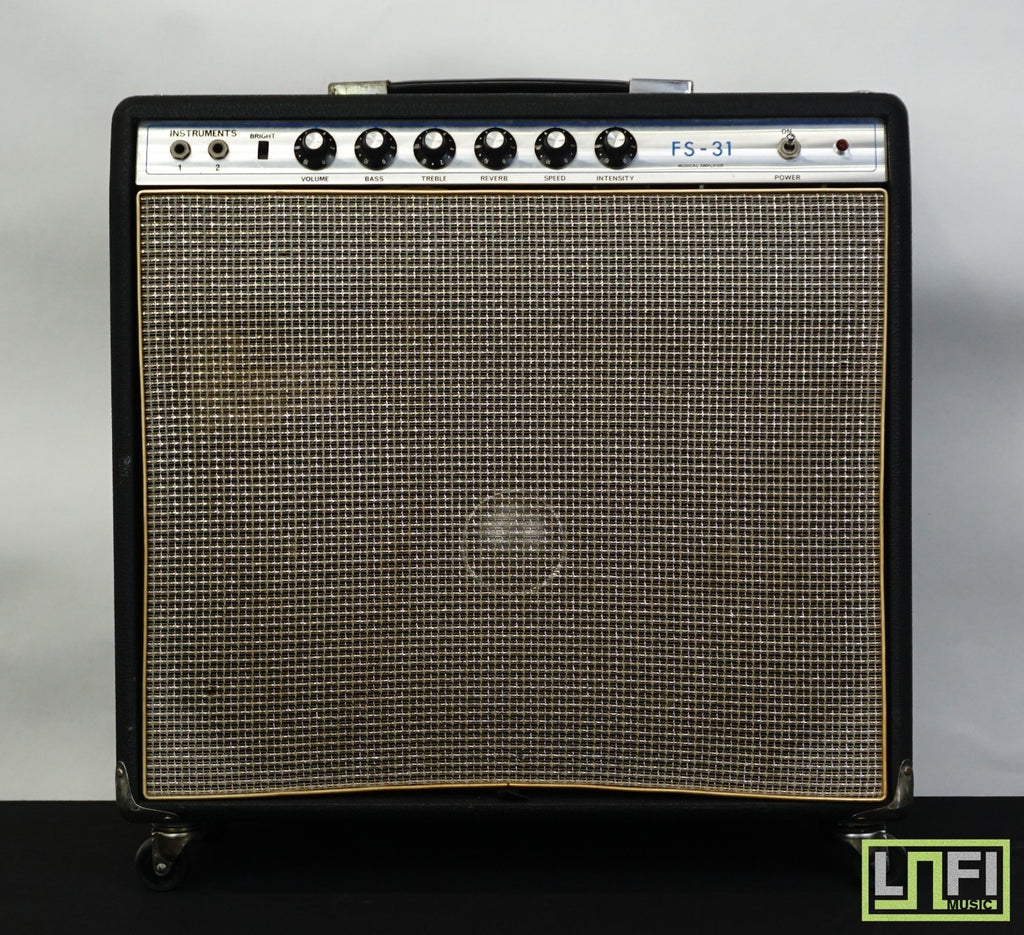 The ELK Inc. FS-31 Musical Amplifier is a rare 1970s Japanese solid-state combo amp made by Elk (formerly Miyuki Ind.), a 12″ speaker, built-in reverb and and a layout clearly inspired by early Fender Silverface combos — ideal for players seeking a distinctive vintage tone with nostalgic styling and full functionality.