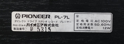 Pioneer PL-7L Vintage 80s Quartz Direct Drive Turntable w/ Ceramic Tonearm 100V