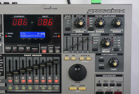 If you are after an all in one techno music production studio, this machine has it all! Containing a massive collection of professional electronic synth and drum sounds, effects, built-in real-time VCF and envelope knobs for tweaking. The D-Beam allows you to randomly tweak your sounds by passing your hand over an infrared beam! It has a great sequencer for building your songs as well as many idea catchers like the arpeggiator.